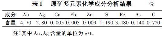 礦石化學組成:我國南方某金礦開采的是蝕變糜棱巖型金礦床,其原礦化學多元素分析結果見表1